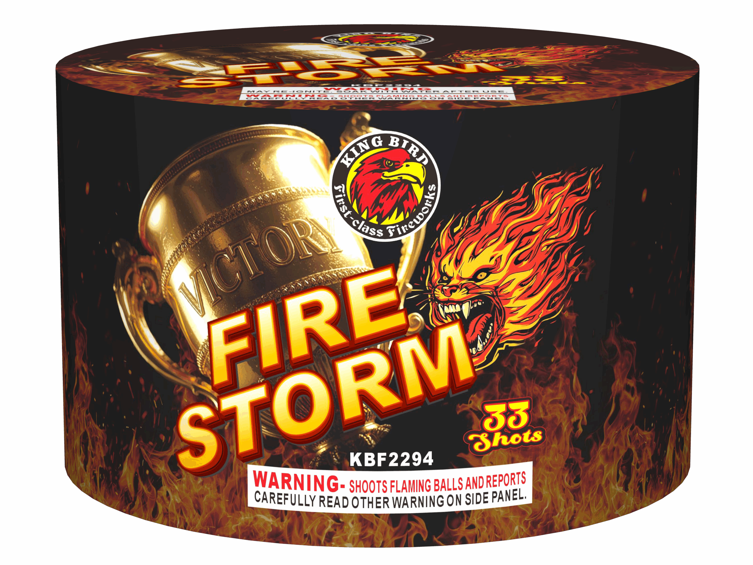VICTORY FIRESTORM will light up the sky in a 33 shot firestorm of willows and color! Gold titanium willow, red dahlia; gold titanium willow, green dahlia; gold titanium willow, blue dahlia; blue stars and red falling leaves; blue stars and green falling leaves.